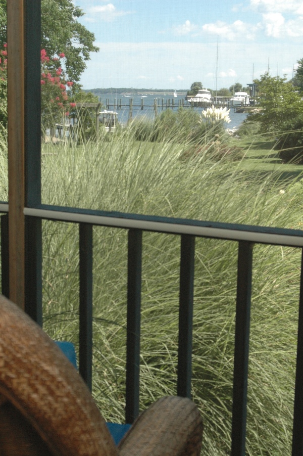 Lavender is a favorite among guests. This private cottage offers the best of both the in-and out-of-doors. French doors open to a screened-in porch where rocking chairs invite you to rest and enjoy the garden fragrances and waterfront view of Back Creek. In contrast, the warmth and glow of the gas fireplace beckon you indoors.